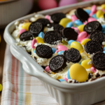Easter is all about sweet treats, pastel colors, and indulgent desserts, and this Easter Oreo Cookie Casserole delivers on all fronts! Imagine layers of crushed Golden Oreos, creamy pudding, fluffy whipped topping, and festive Easter candy all coming together in one dreamy, no-bake dessert. It’s easy to make, fun to decorate, and an instant crowd-pleaser. Whether you’re hosting an Easter brunch or just want a fun treat to enjoy with family, this recipe is a must-try!