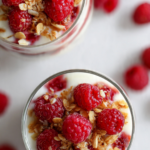 A creamy, fruity, and crunchy raspberry parfait made with layers of Greek yogurt, fresh raspberries, and golden granola. Ready in just 10 minutes, this refreshing treat is perfect for breakfast, snack time, or a light dessert.