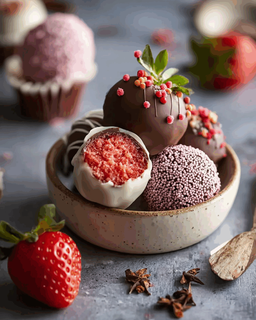 Sweet little bites like these have a way of stealing the show. Imagine the juiciness of fresh strawberries blending seamlessly with smooth chocolate and a touch of creaminess, all rolled into delicate truffles that melt on your tongue. These truffles are indulgent yet wonderfully simple, the kind of treat that looks elegant enough for a celebration but is easy enough to whip up on a whim.