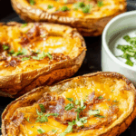 Crispy, golden Air Fryer Potato Skins filled with melty cheese, creamy sour cream, and fresh green onions. A lighter, faster twist on the classic appetizer that’s perfect for parties or cozy nights in.