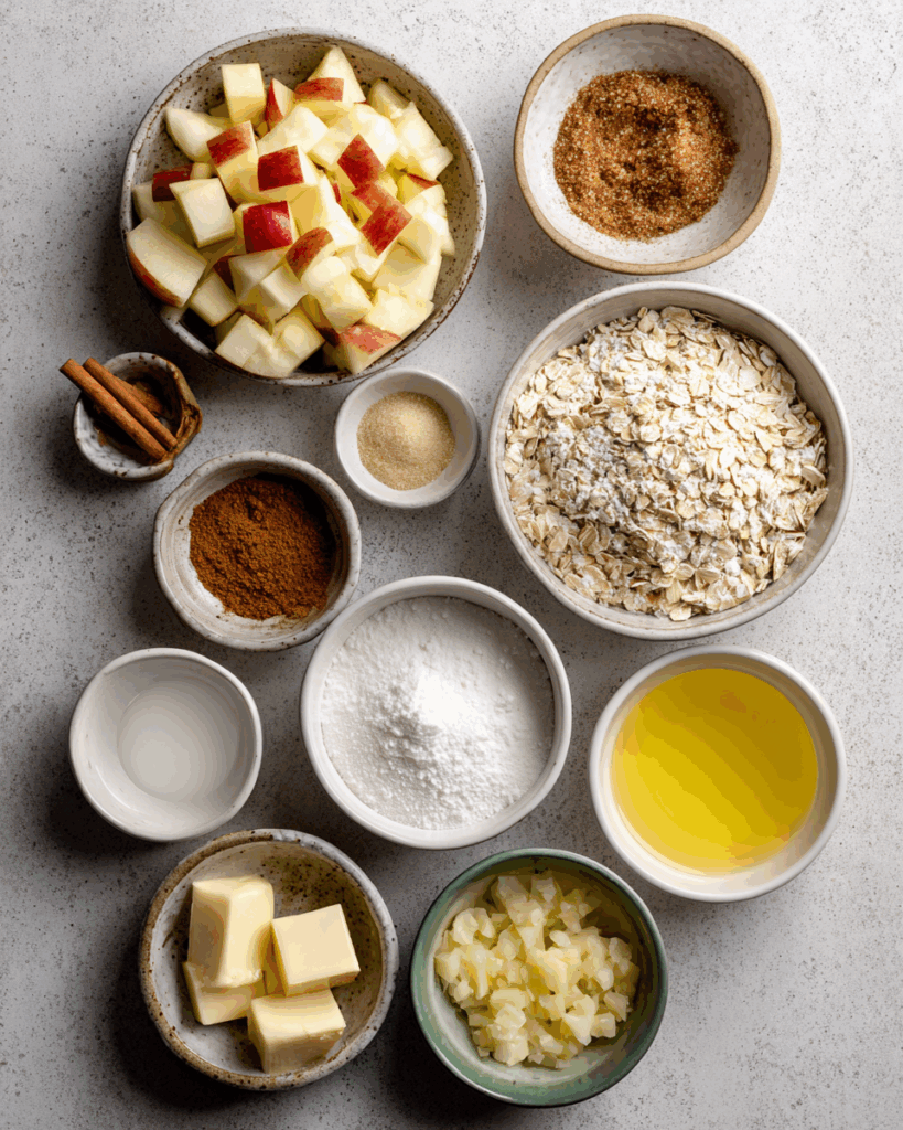 The magic of this recipe lies in the harmony of sweet apples, warm spices, and a buttery oat crunch. Here’s what you’ll need:
