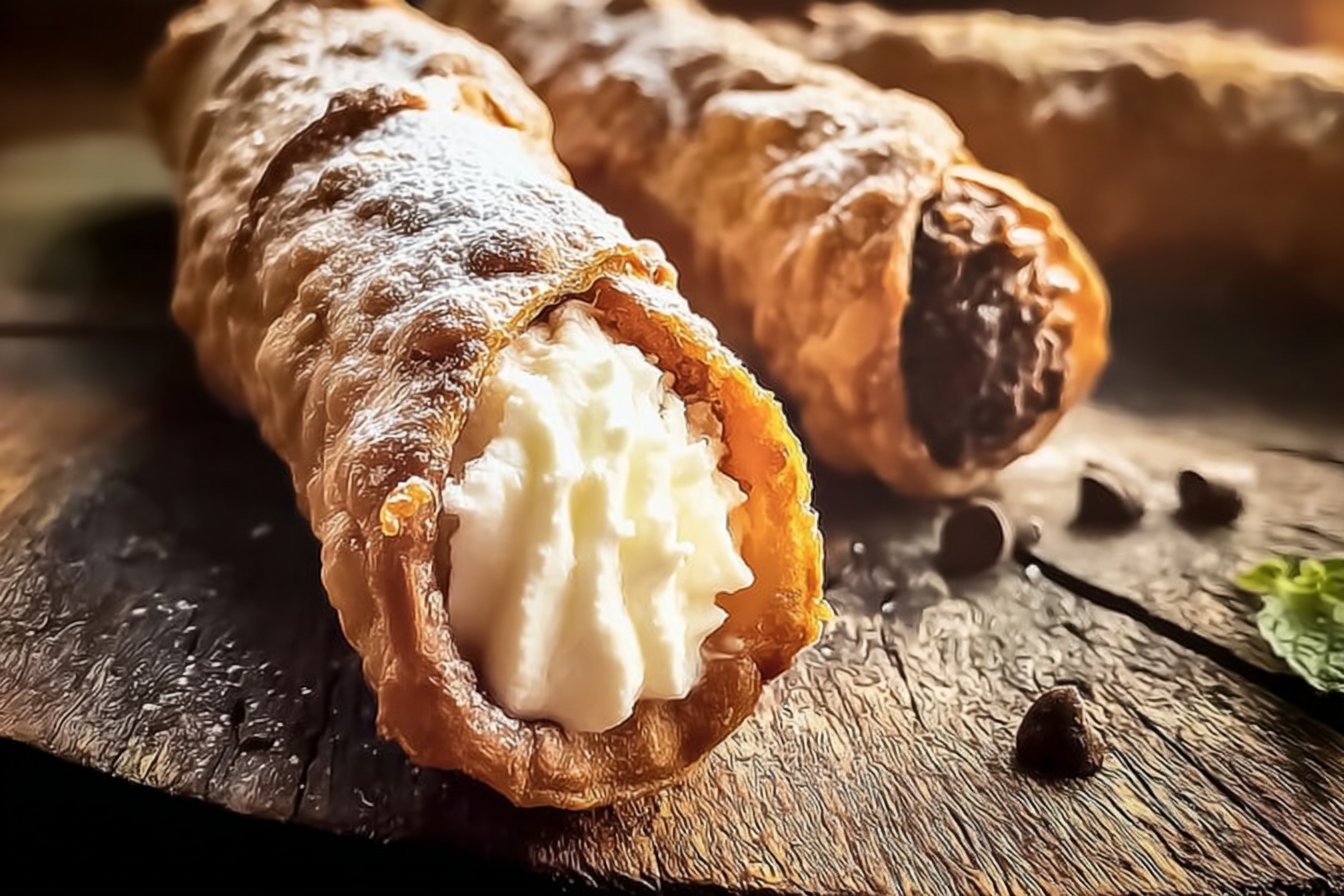 Authentic Italian Cannoli are a Sicilian classic, featuring crisp golden shells filled with sweet, creamy ricotta. Each bite blends crunch with smoothness, enhanced by chocolate chips, pistachios, and citrus zest for a truly unforgettable dessert.