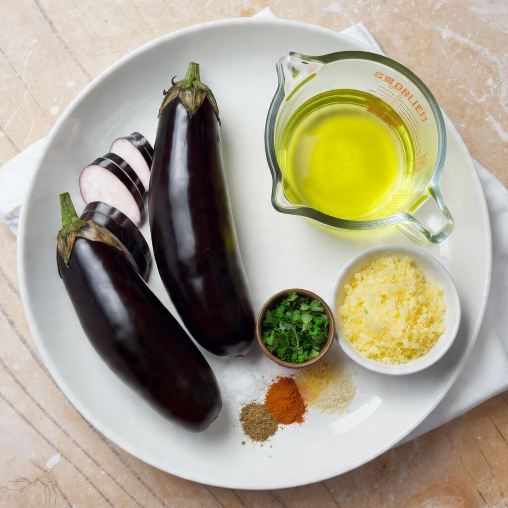 - Eggplants: 2 medium, sliced into ½-inch rounds. Meaty and perfect for roasting.