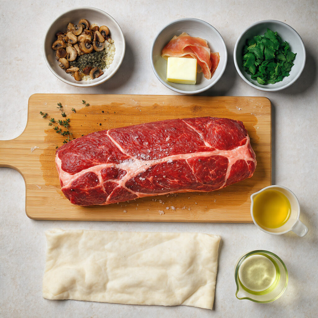 - Prosciutto: 6 to 8 slices, thin. Wraps around the beef to keep moisture at bay and add salty flavor.