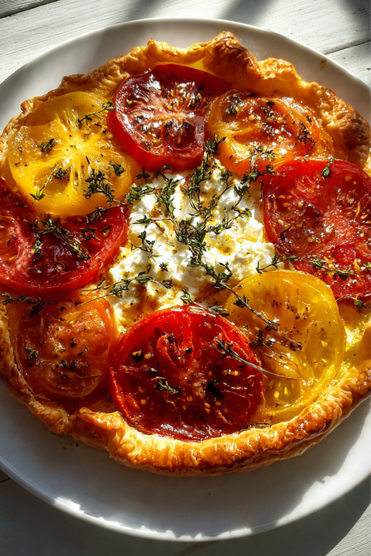 This tart was born on a summer afternoon when my garden tomatoes were overflowing and I wanted something comforting yet impressive. I pulled out a sheet of puff pastry, layered it with goat cheese, piled on thick slices of tomatoes, and sprinkled fresh thyme on top. The moment it came out of the oven, golden and bubbling, I knew I had stumbled upon something special.