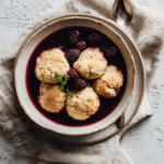 Blackberry soup, believe it or not, has deep roots in Nordic cuisine. Known in parts of Scandinavia as “bärsoppa,” fruit soups like this one are traditionally served chilled or warm, depending on the season. Biscuits, while very much a Southern U.S. staple, make an incredibly cozy partner to the tart-sweet richness of the berries. This fusion brings together two worlds—European fruit traditions and down-home Southern baking—in one perfect bowl.