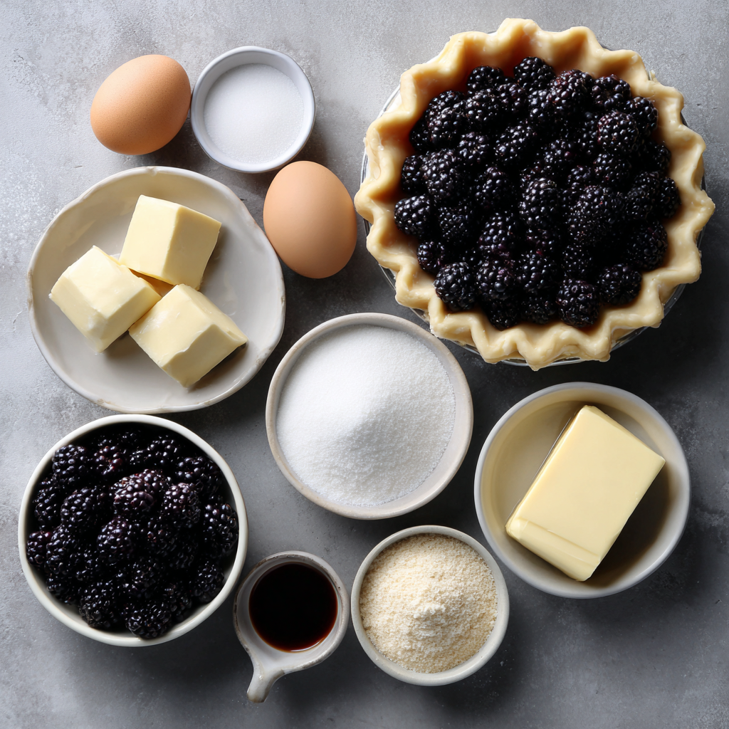 Ingredients in Blackberry pie with frangipane
