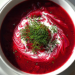 There’s something undeniably comforting about a chilled bowl of borscht on a warm day. The vibrant magenta hue from the beets, the cooling swirl of buttermilk, and the crisp bite of grated cucumber create a dish that is as beautiful to look at as it is refreshing to eat. With every spoonful, you get a taste of earthy sweetness, gentle tang, and a cool crunch that wakes up your palate.