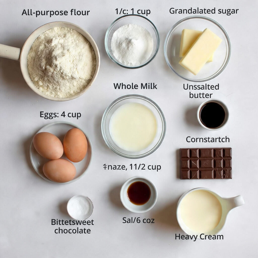 - Whole Milk: 1 cup, creates creamy custard and tender cake.