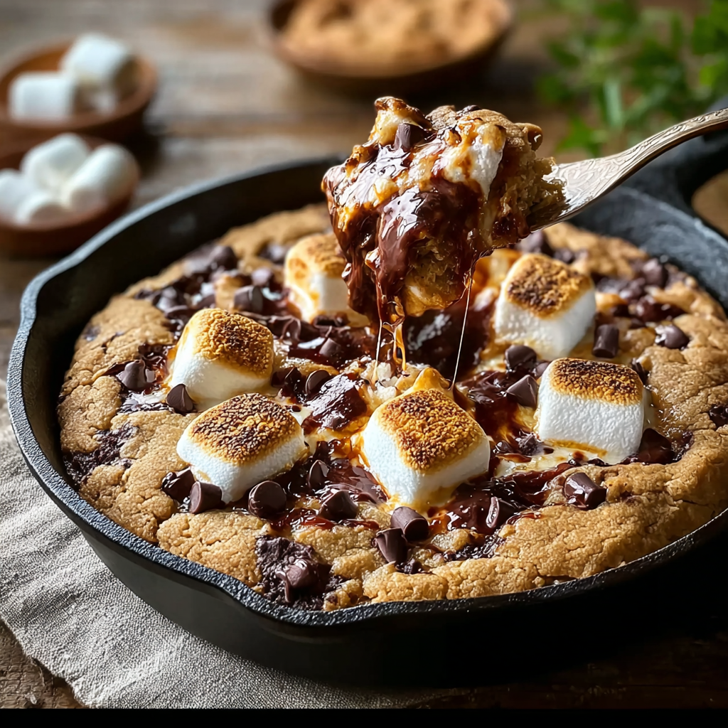 S’mores have long been tied to American camping traditions, first gaining popularity in the 1920s through Girl Scout handbooks. The name itself comes from the phrase “some more,” because one bite is never enough. The cookie skillet, on the other hand, has roots in Southern cast iron cooking, where skillets are beloved for their even heating and rustic presentation. This recipe marries those two traditions into a dessert that feels timeless and comforting.