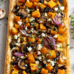 A flaky puff pastry tart topped with roasted butternut squash, savory mushrooms, caramelized red onion, creamy goat cheese, and fresh thyme. Perfect for cozy dinners, brunch, or elegant gatherings.