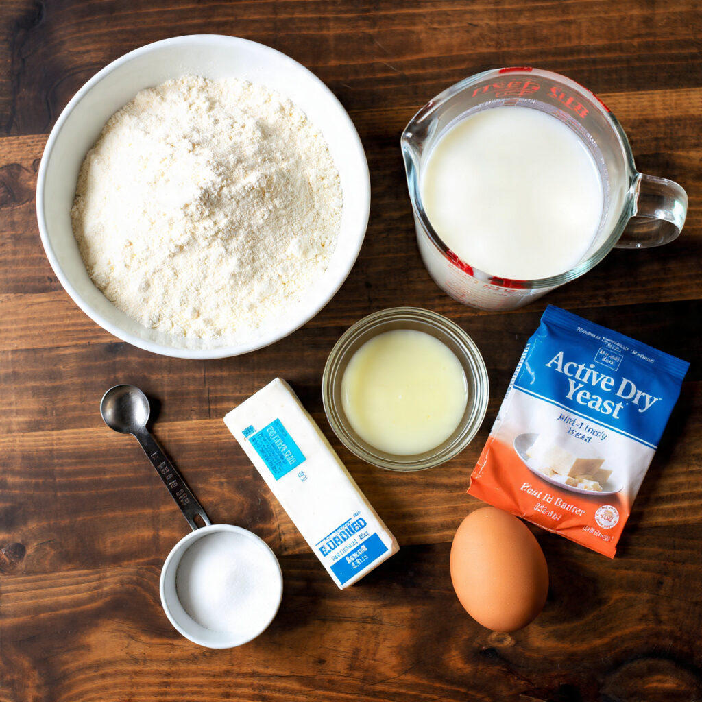 - All-Purpose Flour: 4 cups – Forms the base and structure of the rolls.