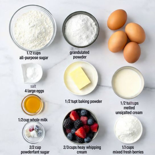- Eggs: 4 large — Whipped to create that airy, light texture.