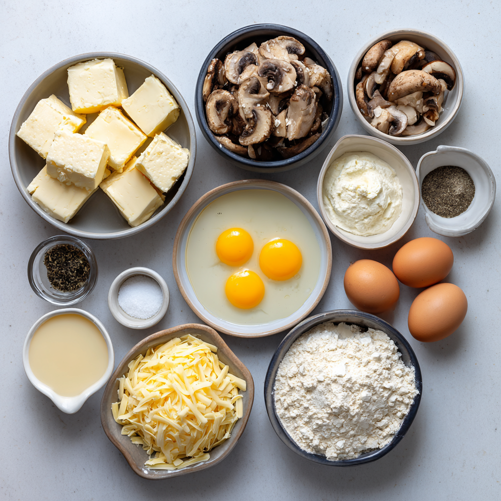 Ingredients in Cheesy Mushroom Tart with Eggs