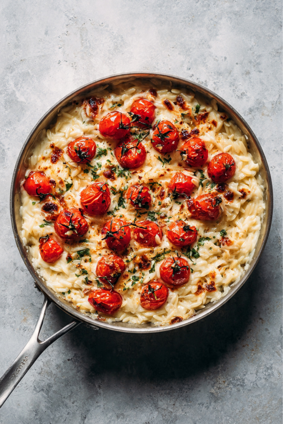 Cheesy Orzo with Roasted Cherry Tomatoes