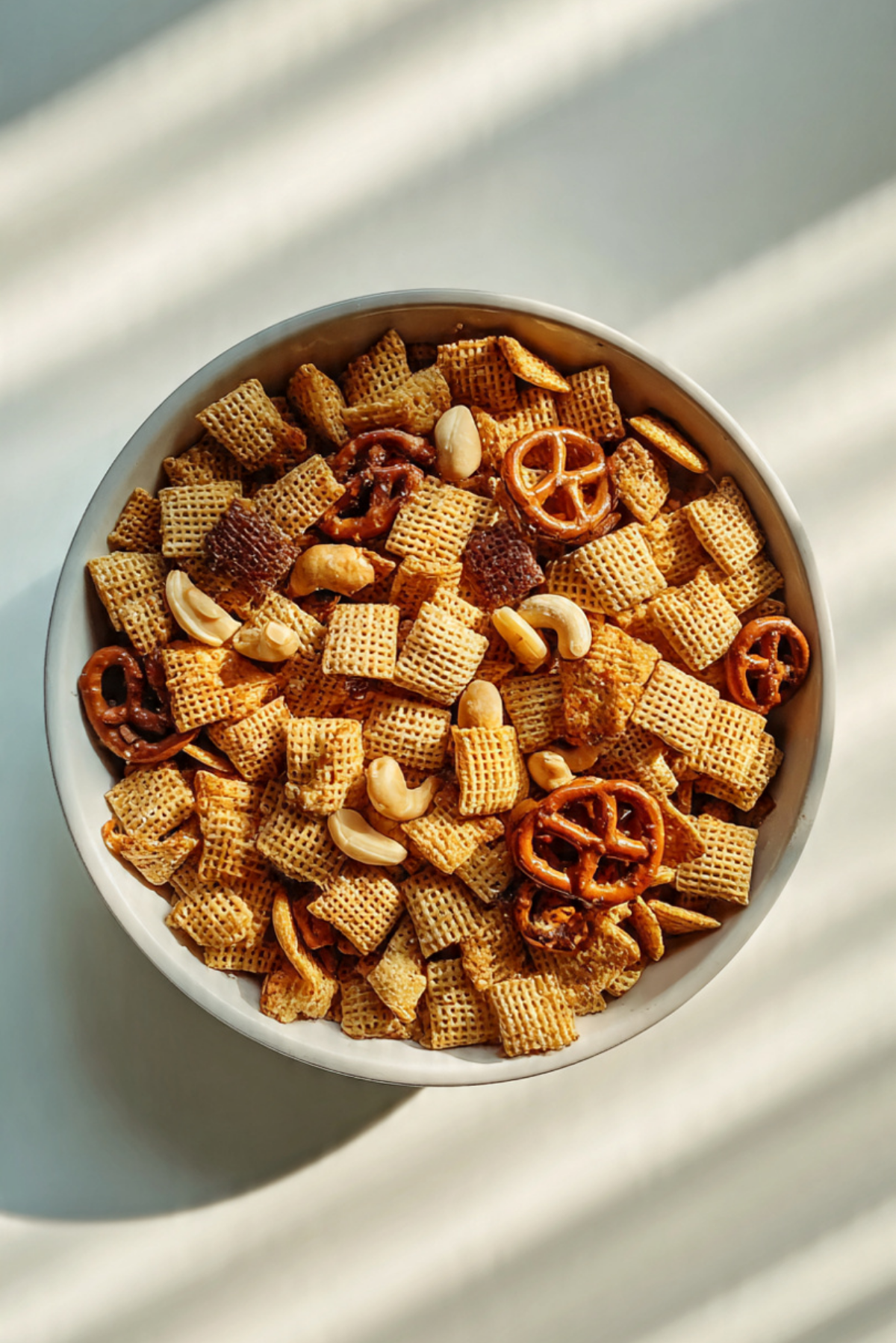 What makes this snack so special is the combination of textures. You get crisp cereal squares that soak up seasoning, salty pretzels for that familiar snap, bagel chips for extra crunch, and roasted nuts for richness. Every handful feels slightly different, and that is exactly the magic. This one’s a total game changer for parties because it can be made in big batches and customized to your taste. And now let’s dive into how this snack became such a staple.