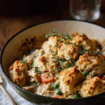 A cozy and comforting Chicken Pot Pie Casserole with Biscuit Crumbles featuring creamy chicken filling, tender vegetables, and a golden, flaky biscuit topping. Perfect for weeknights or family gatherings when you crave something warm and homemade.