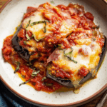 This Chicken Sorrentino with Eggplant and Prosciutto is a comforting Italian classic layered with tender chicken cutlets, smoky prosciutto, silky eggplant, rich tomato sauce, and gooey melted mozzarella. Each bite is hearty, flavorful, and bursting with homemade charm.