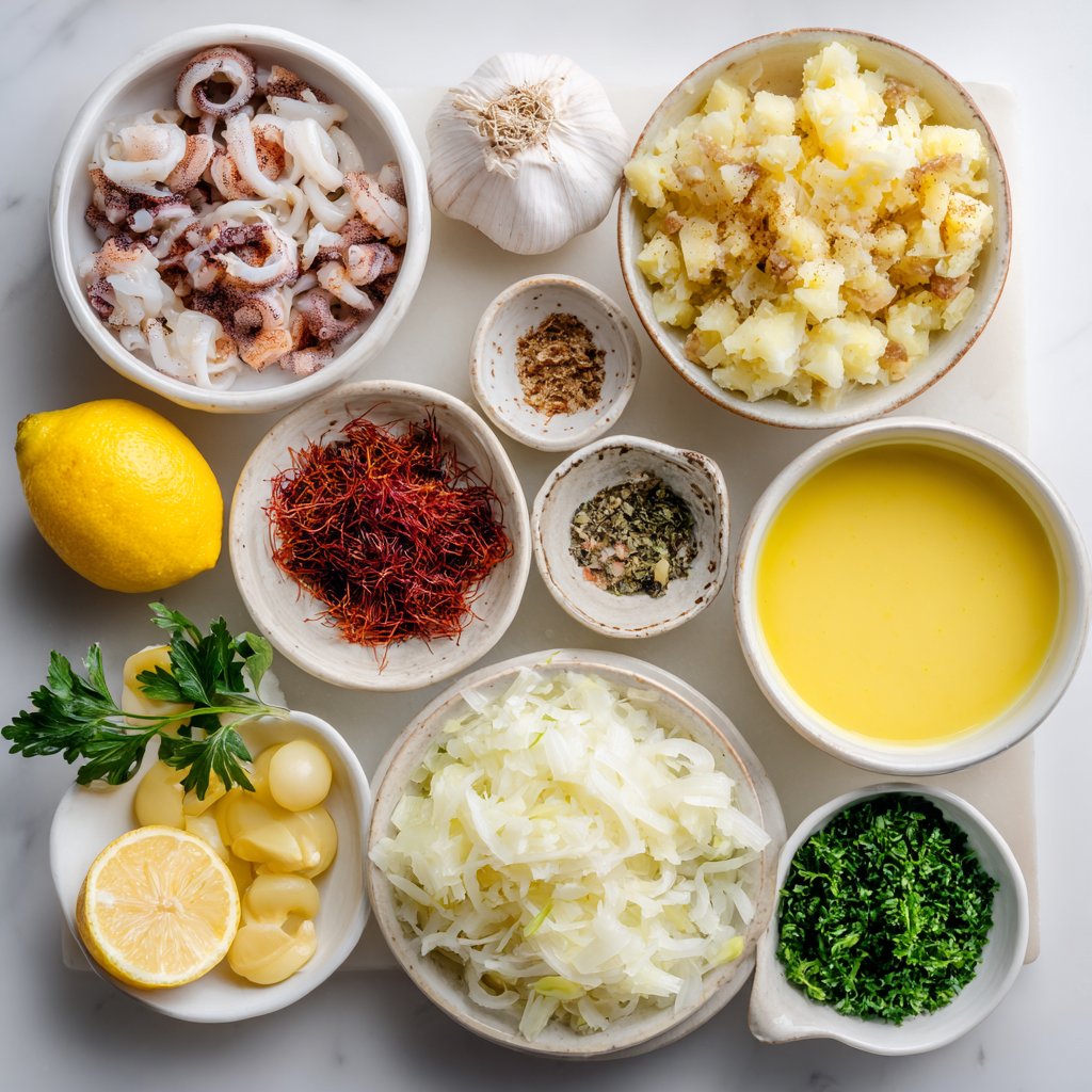 Golden, crisp fritters that shatter with the first bite, revealing tender squid, smoky chorizo, and soft potato, all bound together in a comforting, savory hug. Now imagine dipping those into a silky saffron aioli, its golden hue and floral depth lifting each bite into something unforgettable. This is not just a recipe, it’s a journey of flavors where the land meets the sea on your plate.