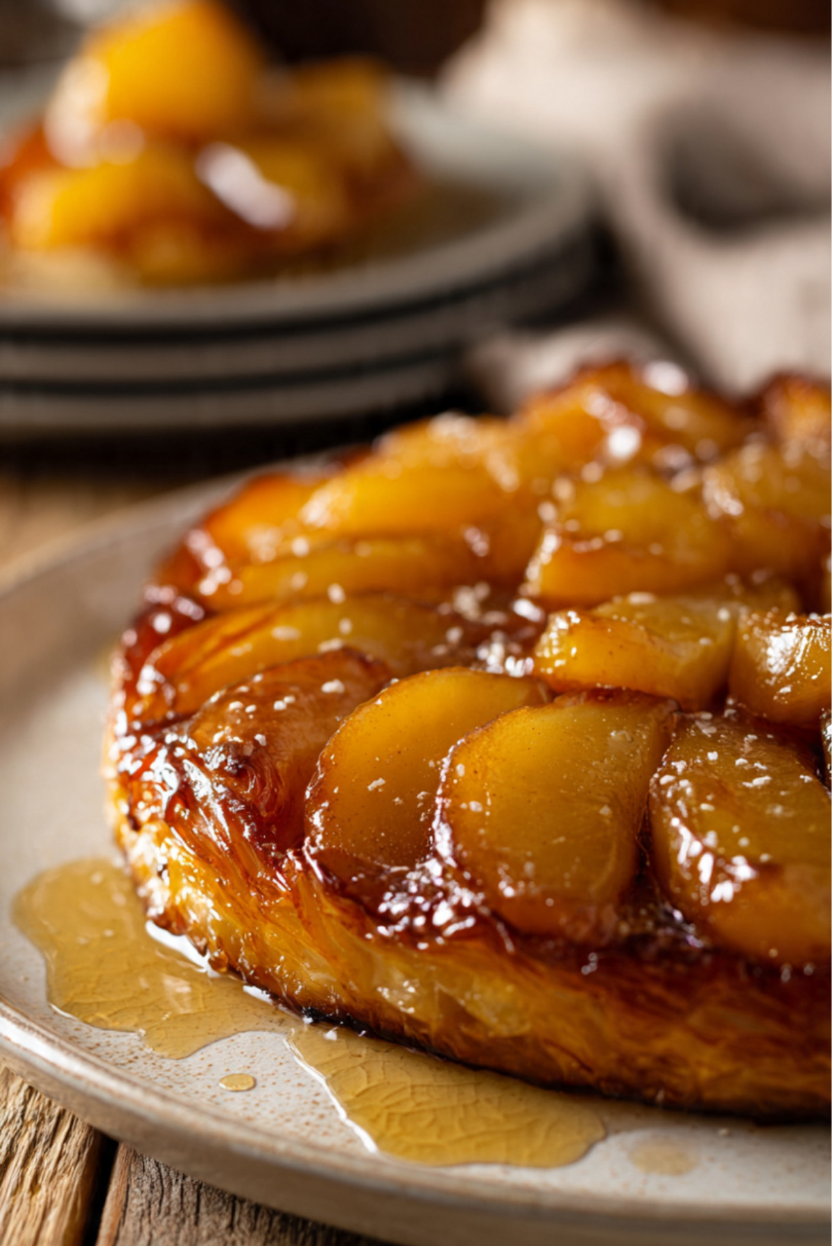 The contrast is what makes this dessert sing — tender, caramel-coated apples with soft centers, a crisp and flaky pastry base, and that rich, buttery glaze that coats every bite. The hint of salt and vanilla makes it taste deeply balanced, not just sweet.