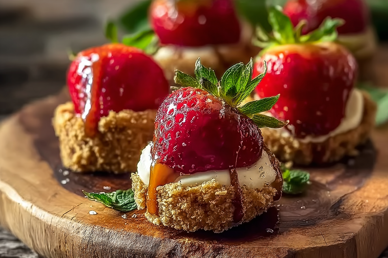 Juicy strawberries hollowed and filled with a velvety cookie butter cheesecake filling, finished with crushed speculoos for crunch. No baking required, elegant to serve, and perfect for parties or a quick indulgent treat.