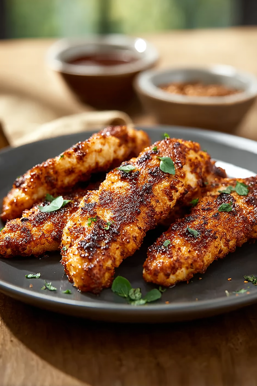 You can prep the spice mix ahead and keep it sealed in a jar for up to a month. The cooked tenders store well in an airtight container in the fridge for up to 3 days. Reheat gently in a skillet or air fryer to revive the crisp edges. You can also freeze the cooked chicken for up to 2 months.