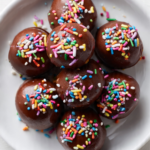 Rich, fudgy chocolate protein bites inspired by classic cosmic brownies, coated in dark chocolate and topped with colorful candy-coated chips. A no-bake, protein-packed snack perfect for meal prep or satisfying sweet cravings.