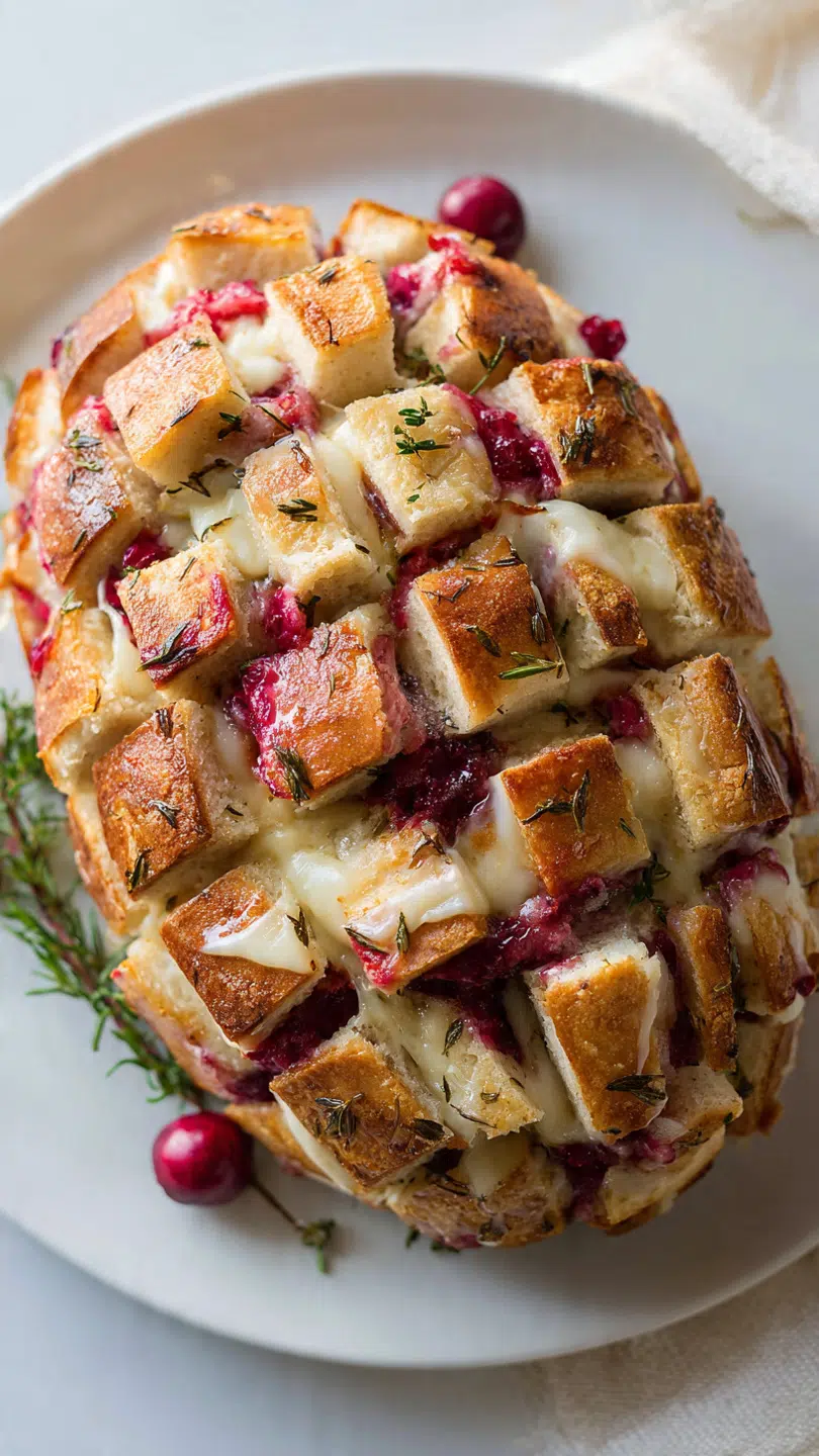 What I love most about this recipe is how it turns a simple loaf of bread into something dramatic and inviting. The crosshatch cuts create pockets that hold all that melted cheese and cranberry goodness.