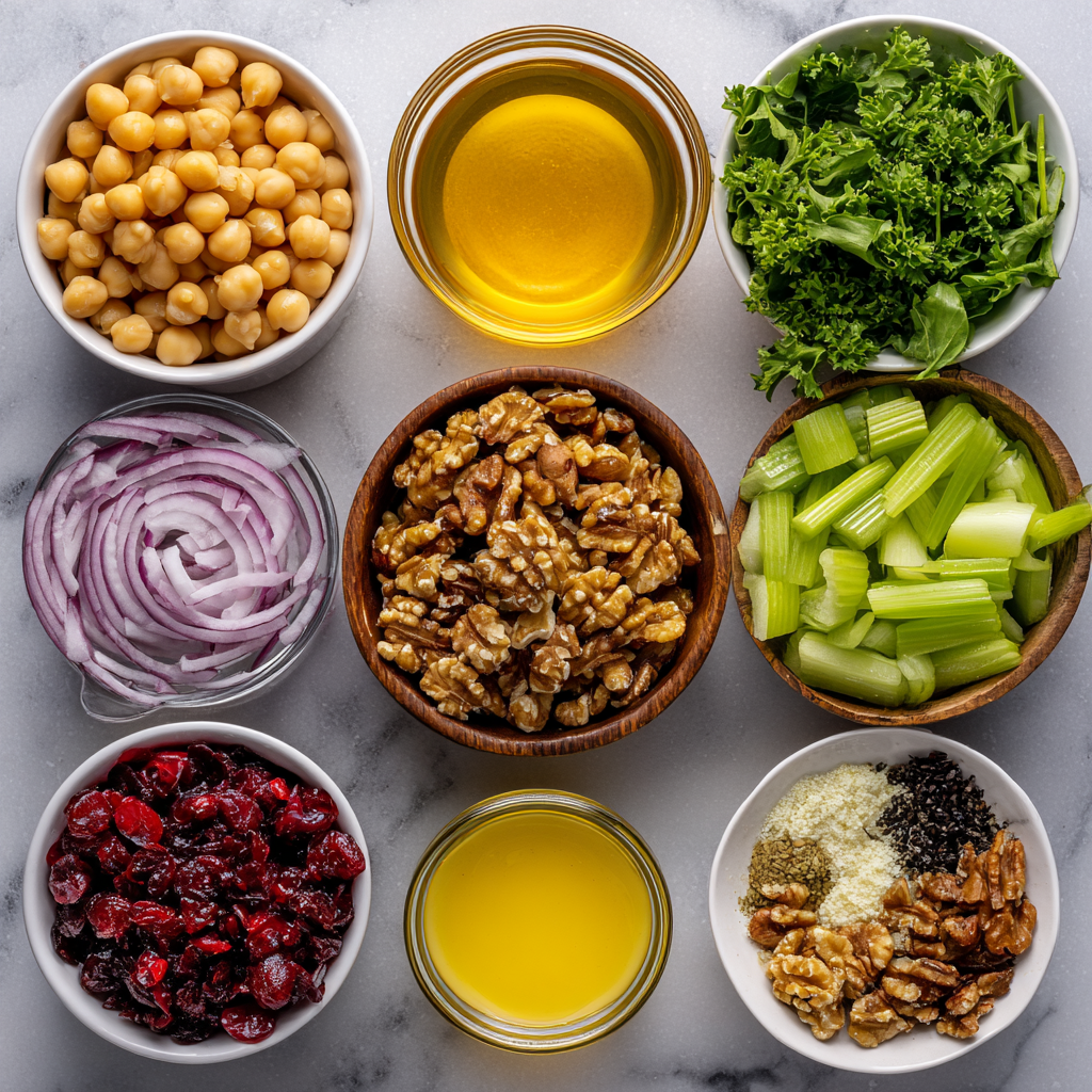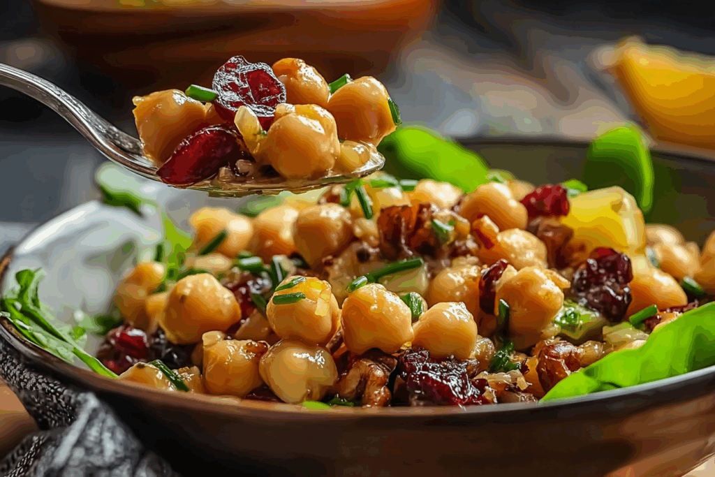 The beauty of this salad lies in contrast. The tender chickpeas meet crunchy walnuts and crisp celery, while the juicy cranberries add tiny bursts of sweetness. The vinaigrette ties everything together with citrus brightness, creating a refreshing yet grounding experience.