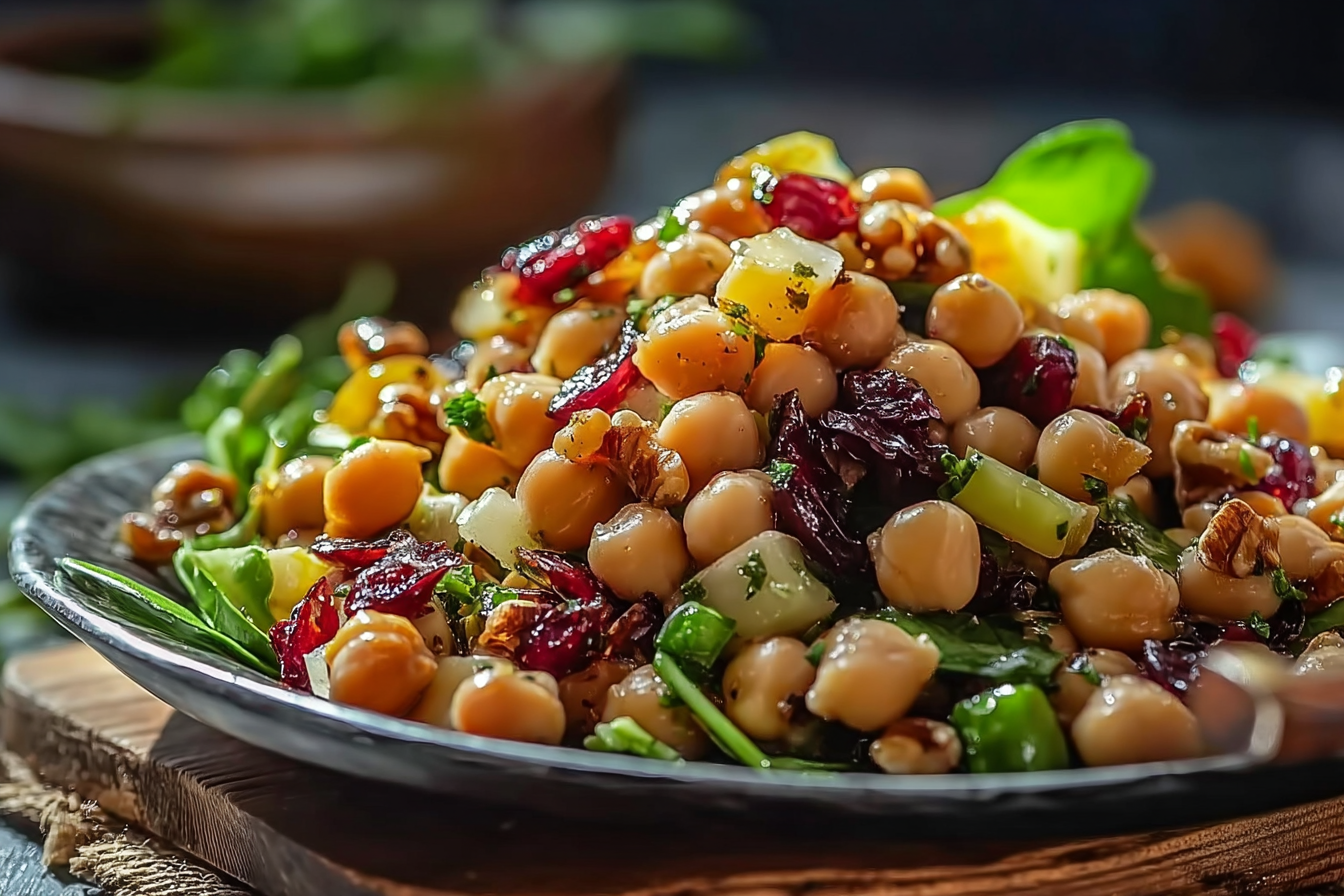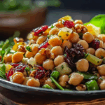 A vibrant and refreshing salad made with chickpeas, dried cranberries, toasted walnuts, and a zesty homemade orange vinaigrette. Each bite balances sweetness, crunch, and citrus brightness for a wholesome, satisfying meal.