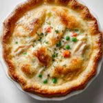 A cozy, classic creamy chicken pot pie with a golden flaky crust and a rich, comforting filling loaded with tender chicken and vegetables.