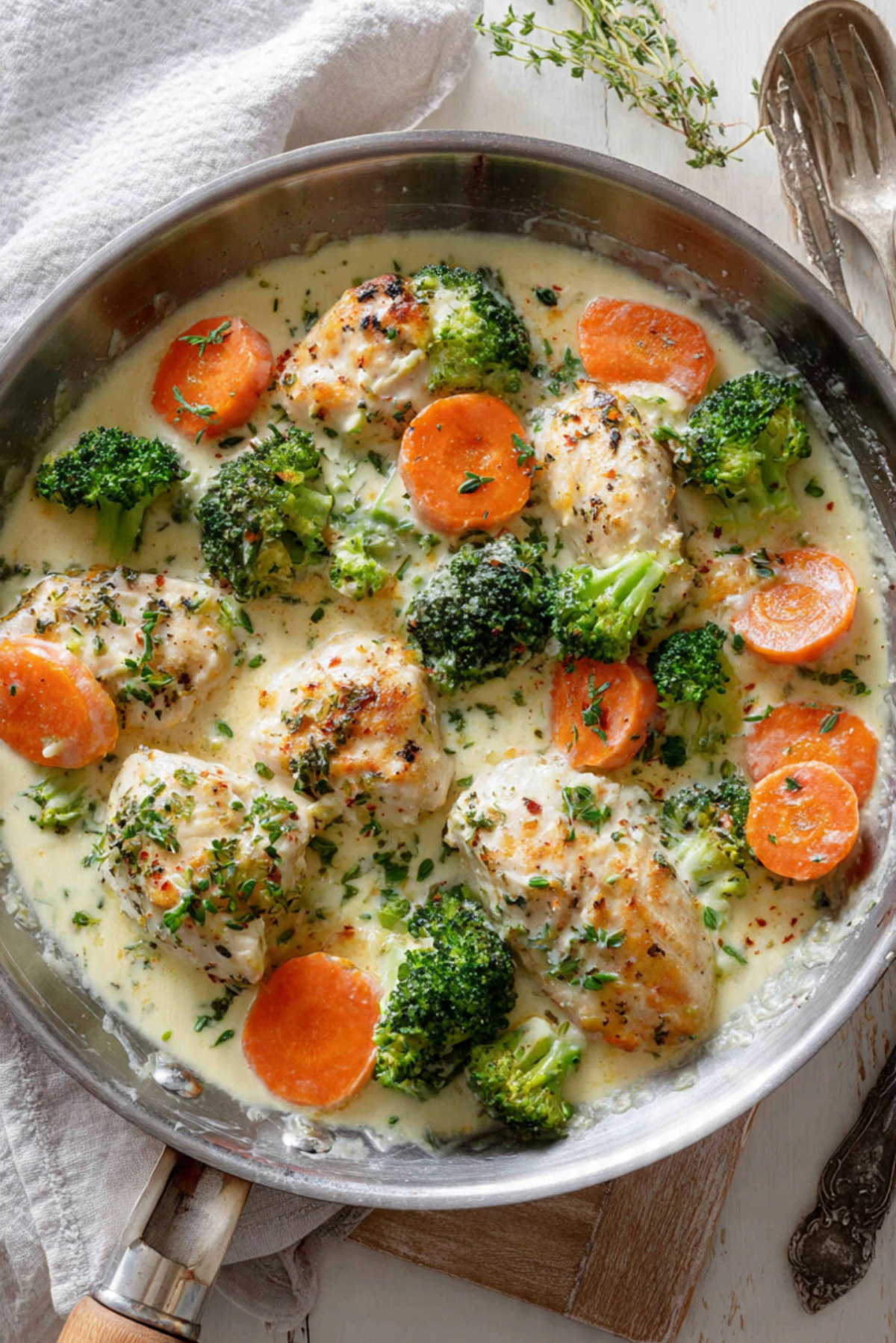 There is something deeply satisfying about tender chicken coated in a creamy garlic sauce with vegetables that soak up every bit of flavor. It feels cozy without being heavy, and familiar while still exciting. This is one of those dinners that looks impressive on the plate but feels easy and relaxed while you cook it.