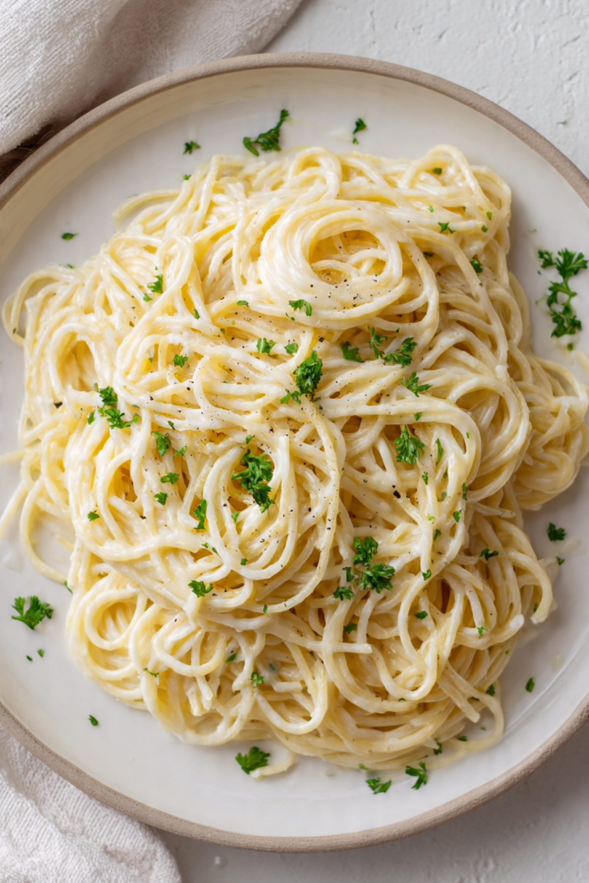 What makes this dish so satisfying is the way the sauce clings to each strand of pasta. The cheese melts into the cream, creating a smooth coating that feels rich without being heavy, while the garlic and pepper quietly deepen the flavor.