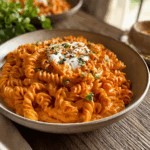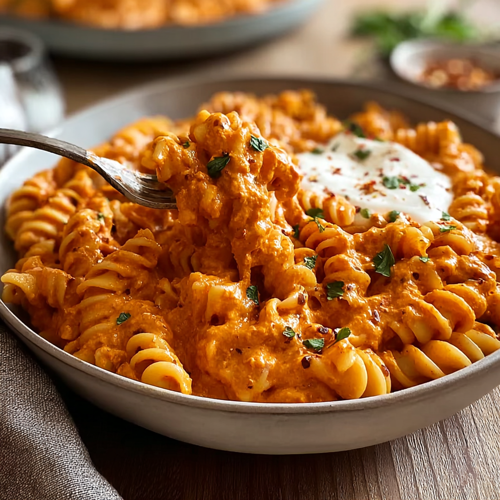 What makes this pasta irresistible is the way the sauce clings to every strand. The cream softens the smokiness of paprika and roasted peppers, while almonds add body and slight texture. Parmesan deepens the savoriness, making every bite smooth yet layered with flavor.