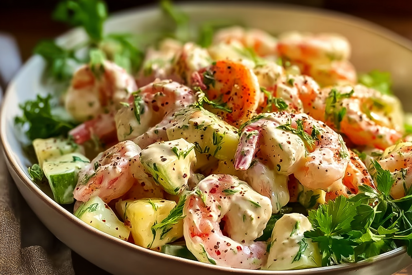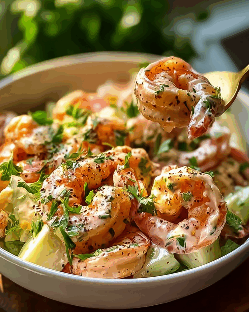 This salad is all about contrast. The shrimp are tender and slightly sweet, the dressing is creamy with a hint of spice, and the vegetables bring freshness and crunch. Together, it creates a bite that’s light yet indulgent, cool but zesty.