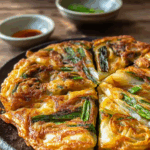 Crispy Korean Spring Onion Pancake (Pajeon) is a savory Korean favorite with golden edges and soft centers, filled with fragrant green onions and served with a tangy dipping sauce. Perfect for a quick snack, appetizer, or light meal that feels both cozy and satisfying.
