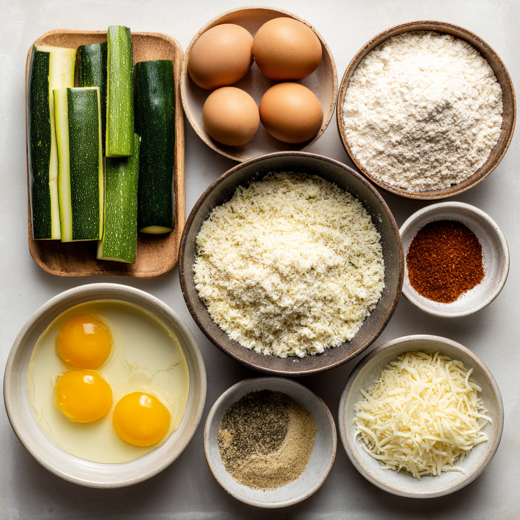 - All-purpose flour: 1/2 cup, helps the coating stick to the zucchini.