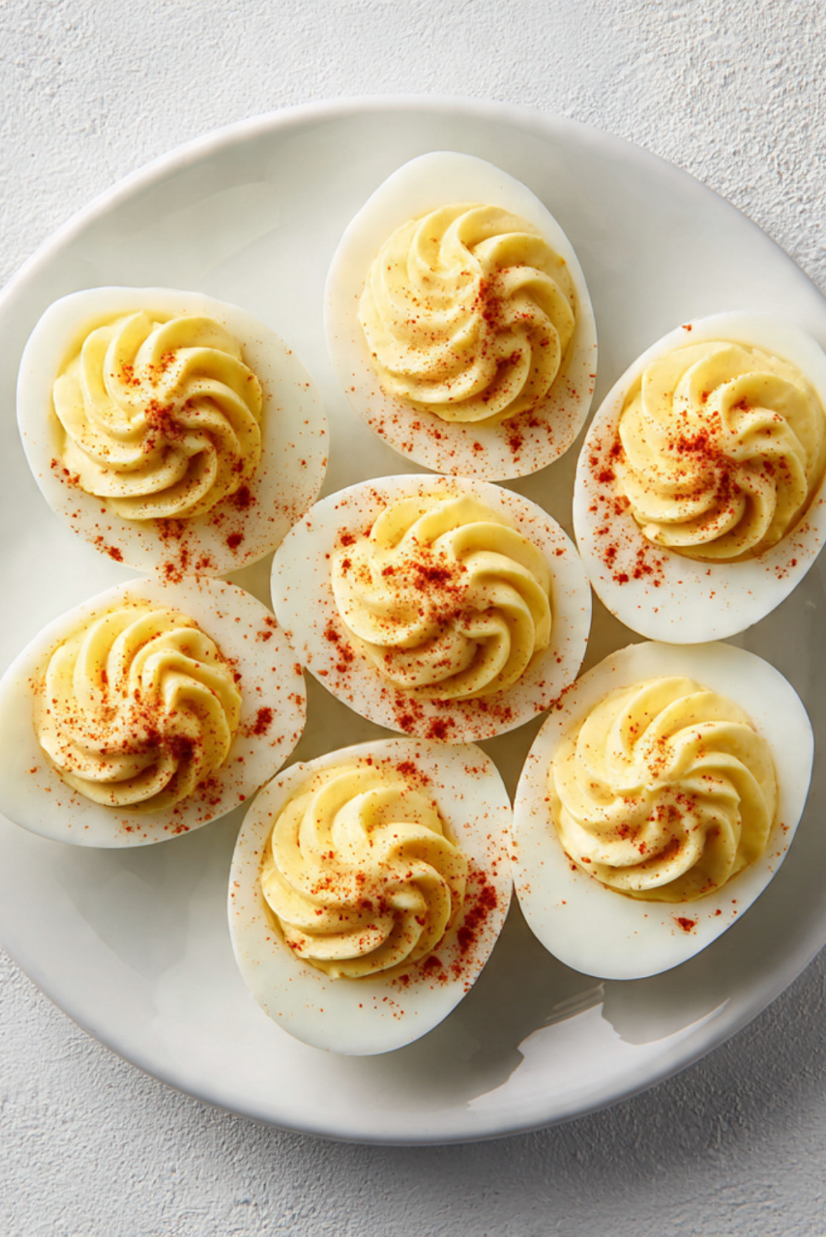 Classic deviled eggs with smooth, creamy filling and a light paprika finish, perfect for parties, holidays, or an easy snack.