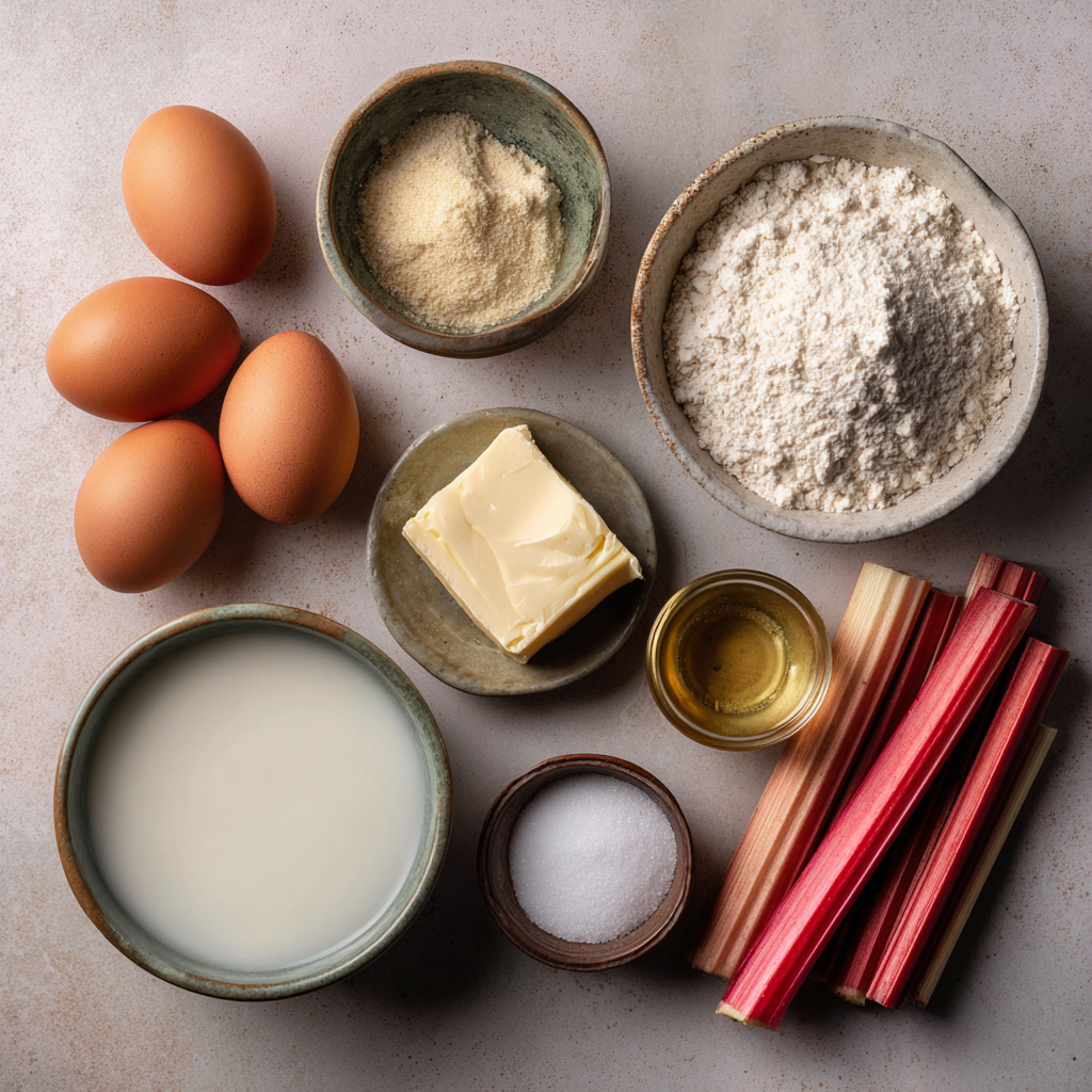 Ingredients for Dutch Baby with Roasted Rhubarb