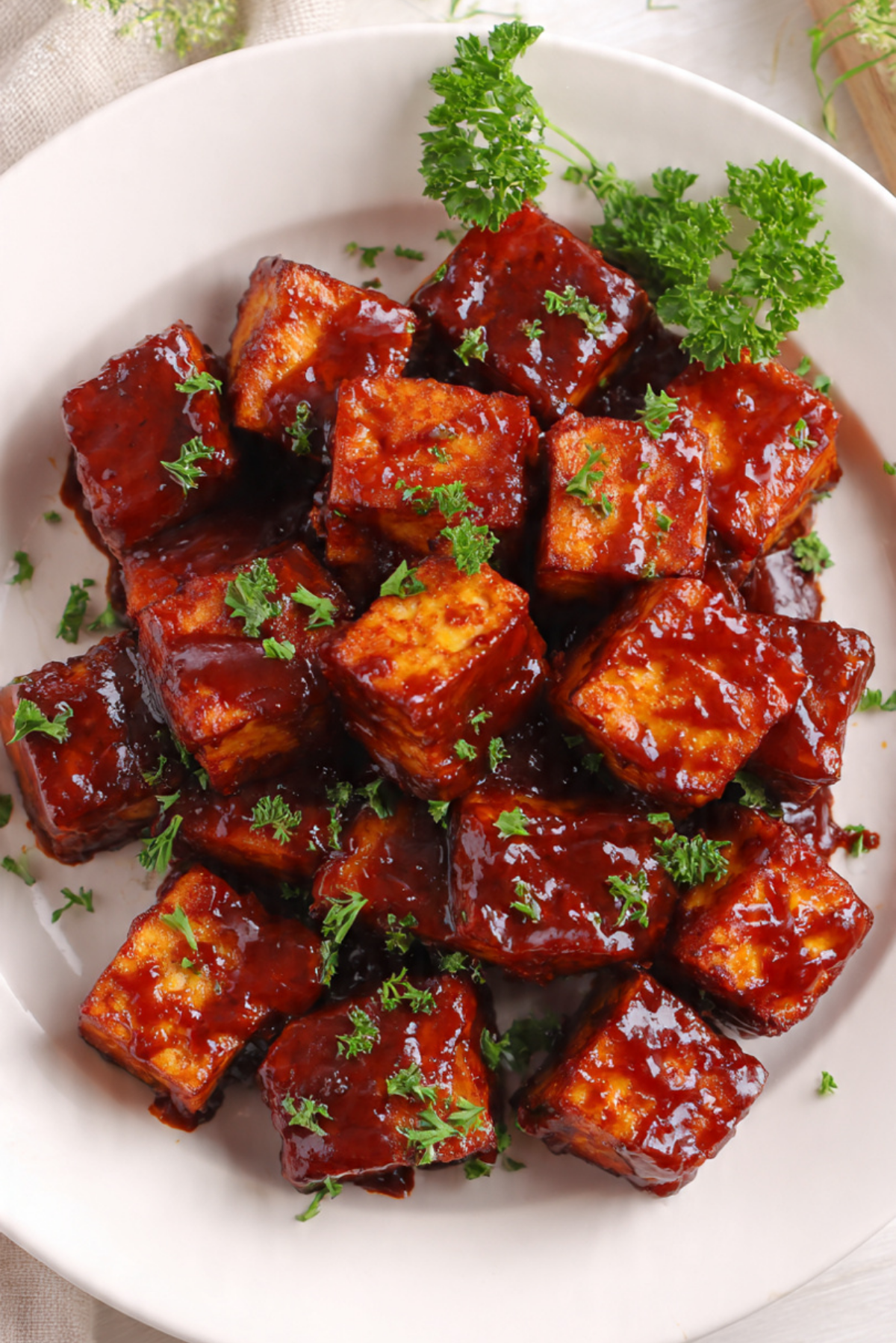 - Let the tofu rest for 5 minutes, then sprinkle with chopped fresh parsley if desired and serve warm.