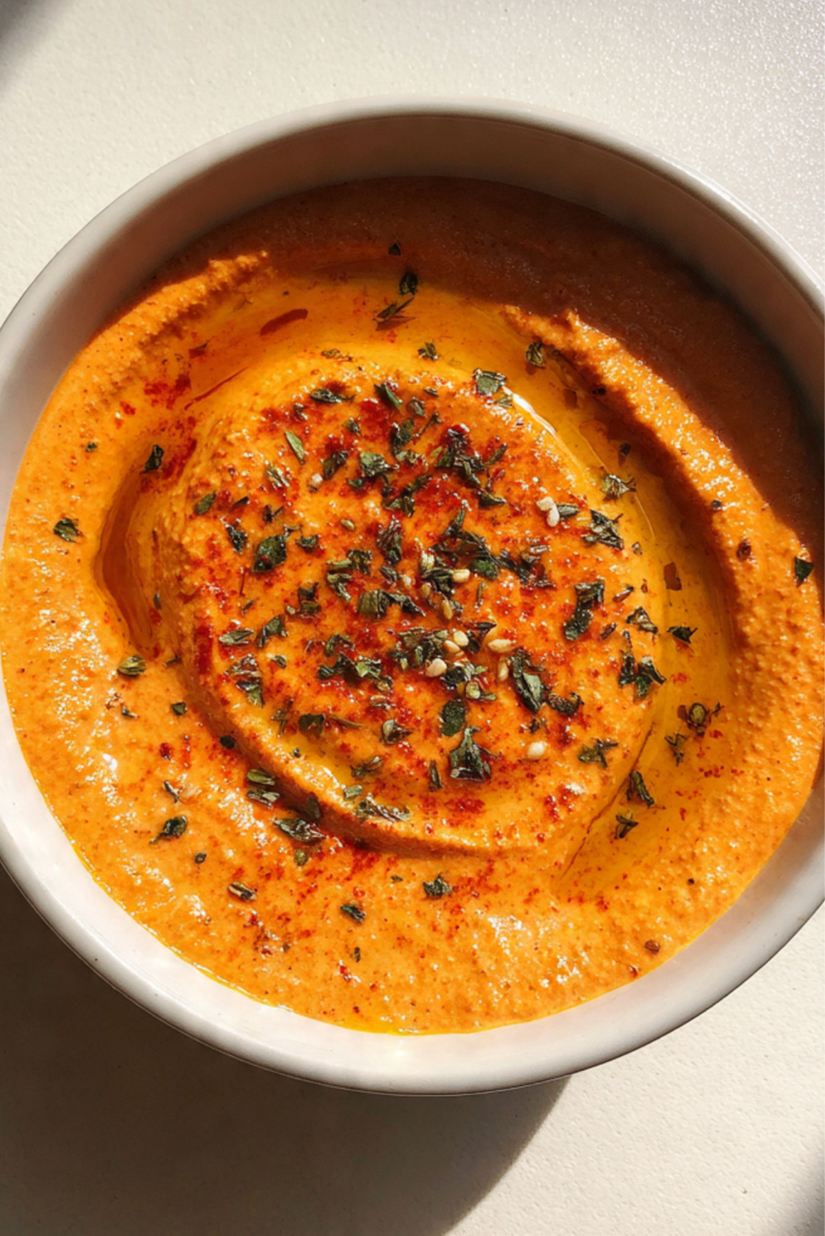 To really wow your guests, serve in a shallow bowl with a drizzle of golden olive oil, crushed almonds, and a sprinkle of smoked paprika. Pair it with a vibrant platter of veggies and grilled bread for a colorful, irresistible spread.