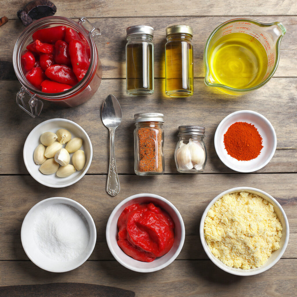 - Roasted Red Peppers: 1 12-ounce jar, drained — provides the smoky-sweet base.