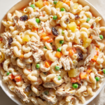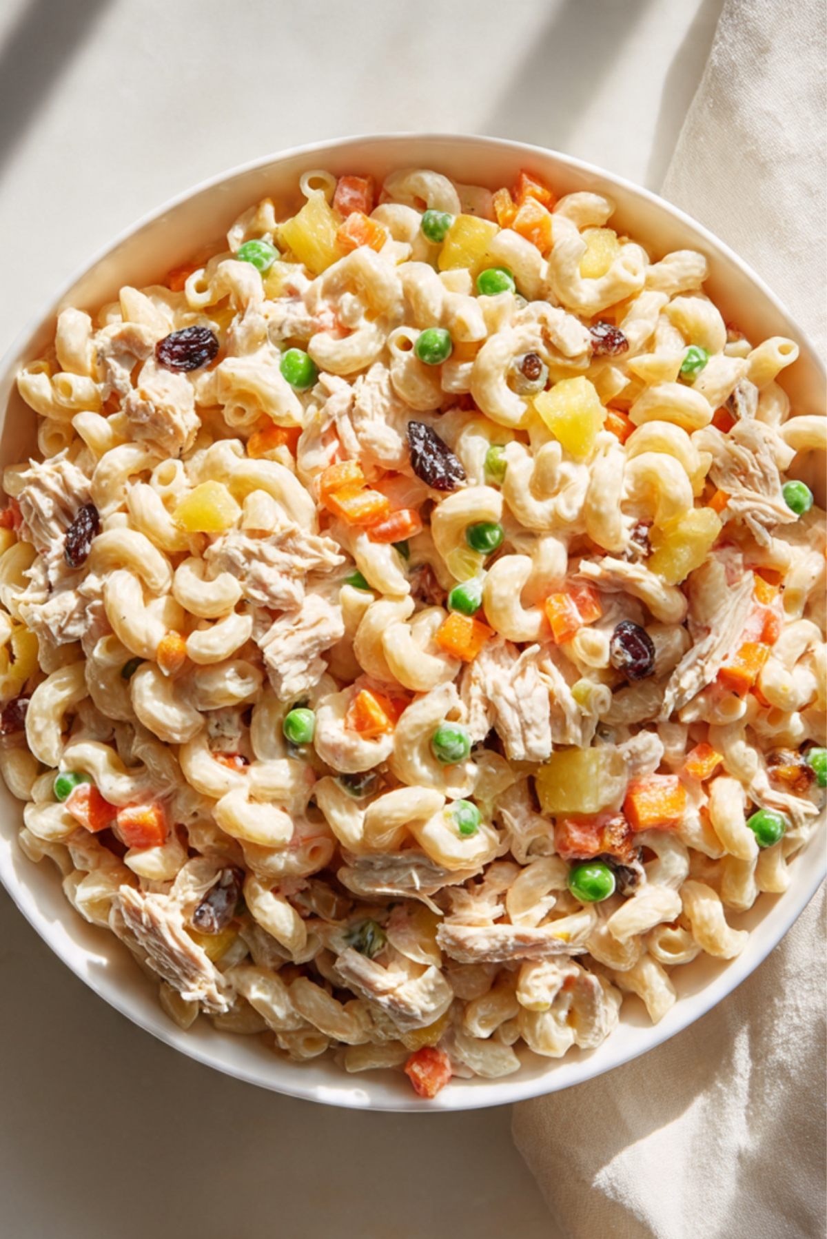 Filipino Macaroni Salad is a creamy, slightly sweet, and colorful pasta dish made with shredded chicken, pineapple, vegetables, raisins, and a rich mayo-based dressing. Perfect for parties, holidays, or as a cold side dish, it’s a beloved Filipino classic packed with flavor and texture.