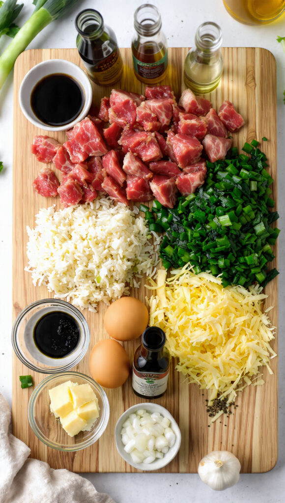 There is something almost magical about a bowl of fried rice that hits the table steaming hot, fragrant, and packed with color. The golden grains glisten, tender slices of beef peek through, and little bursts of tangy pickled mustard greens wake everything up. Then comes the cheese, melting gently into the rice, tying it all together in the most comforting way. Trust me, you’re going to love this. This one’s a total game changer, and let me tell you, it’s worth every bite.