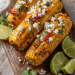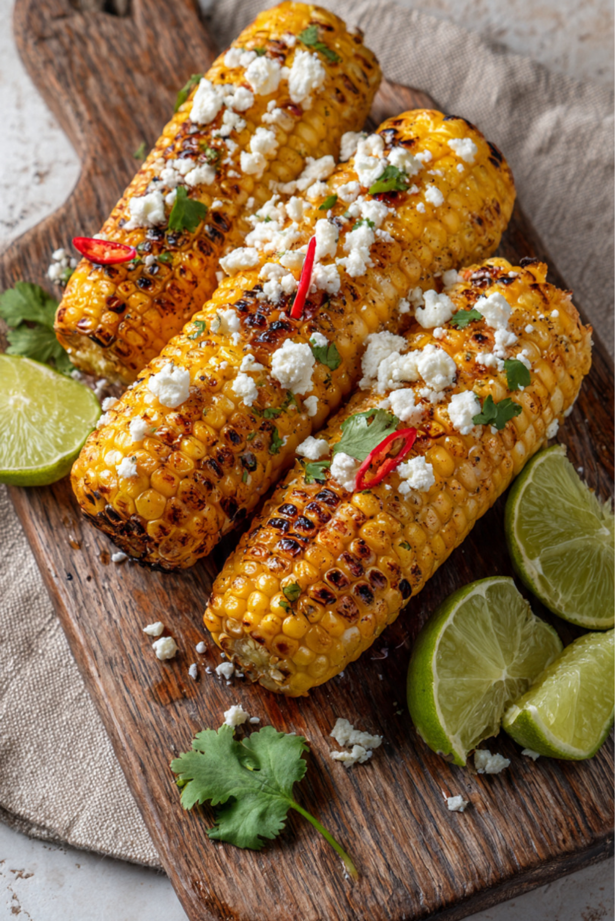 Sweet roasted corn brushed with garlic butter and topped with crumbled feta and sliced chilies. A vibrant, flavor-packed side dish perfect for summer gatherings or cozy dinners.