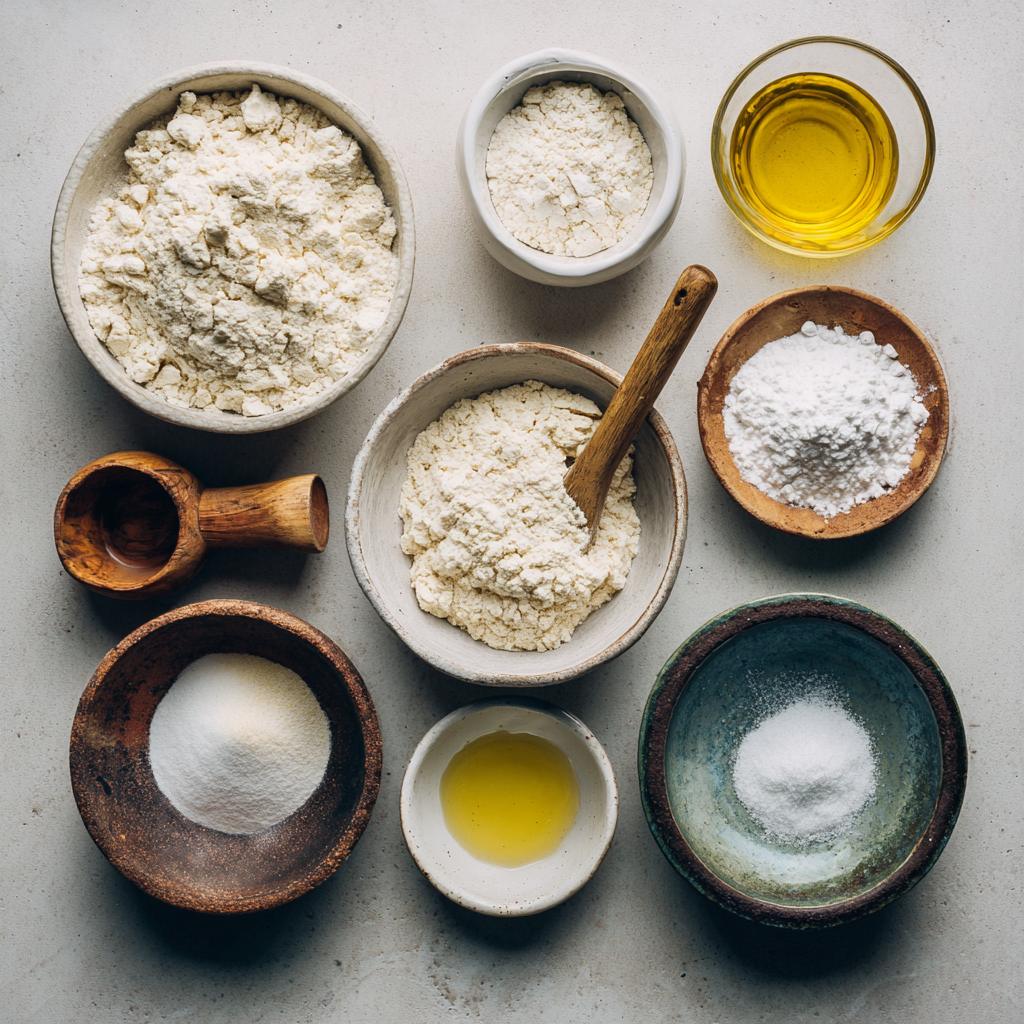 - Combine Ingredients: In a mixing bowl, whisk together the gluten-free flour, xanthan gum, baking powder, and salt. Add the olive oil and warm water, stirring until a dough forms.