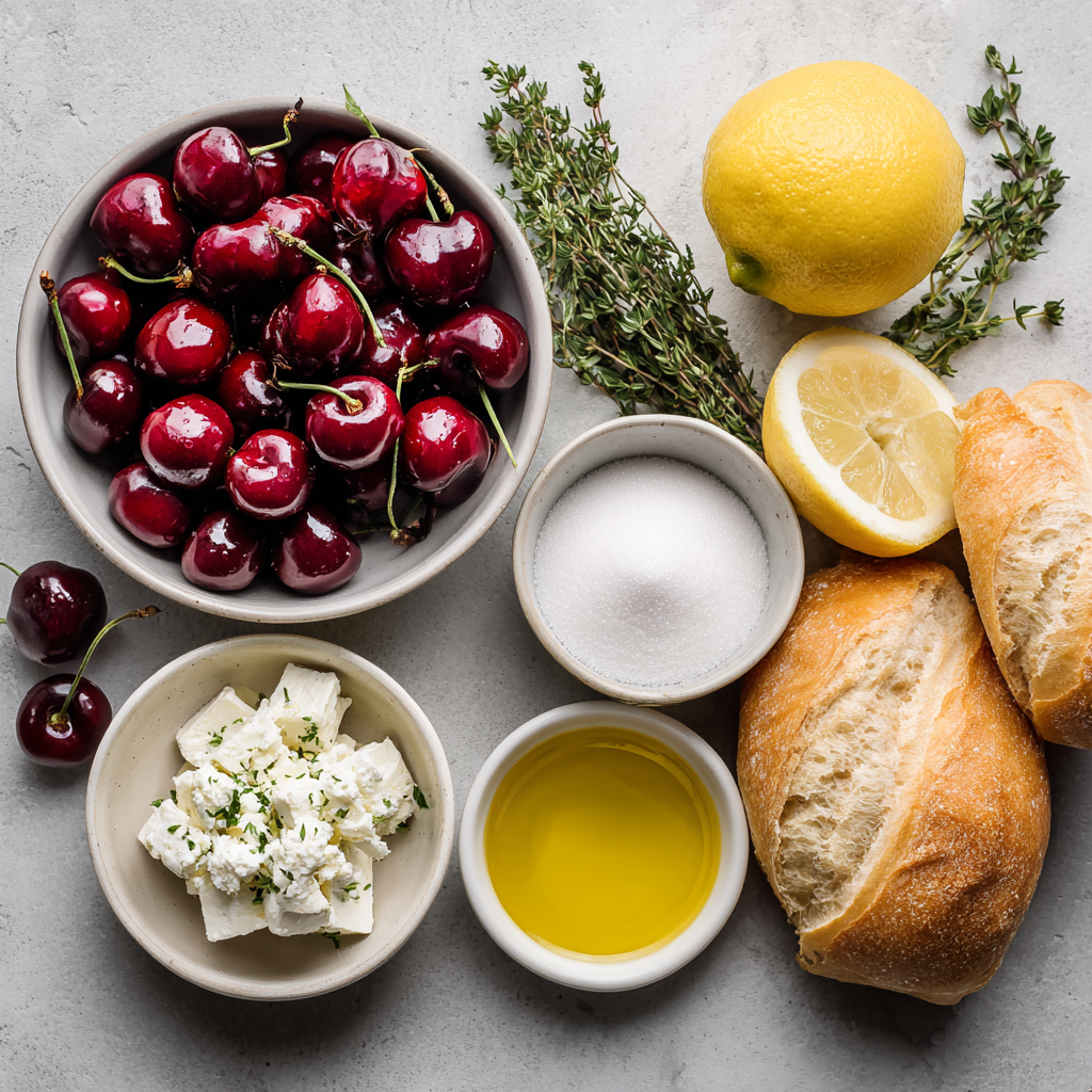 You can prepare the cherries a few hours early and store them covered in the fridge. The crostini can be toasted beforehand but should be assembled just before serving. Leftover cherries stay fresh for two days and taste wonderful on breakfast bowls. The goat cheese spread can be stored for three days in an airtight container.