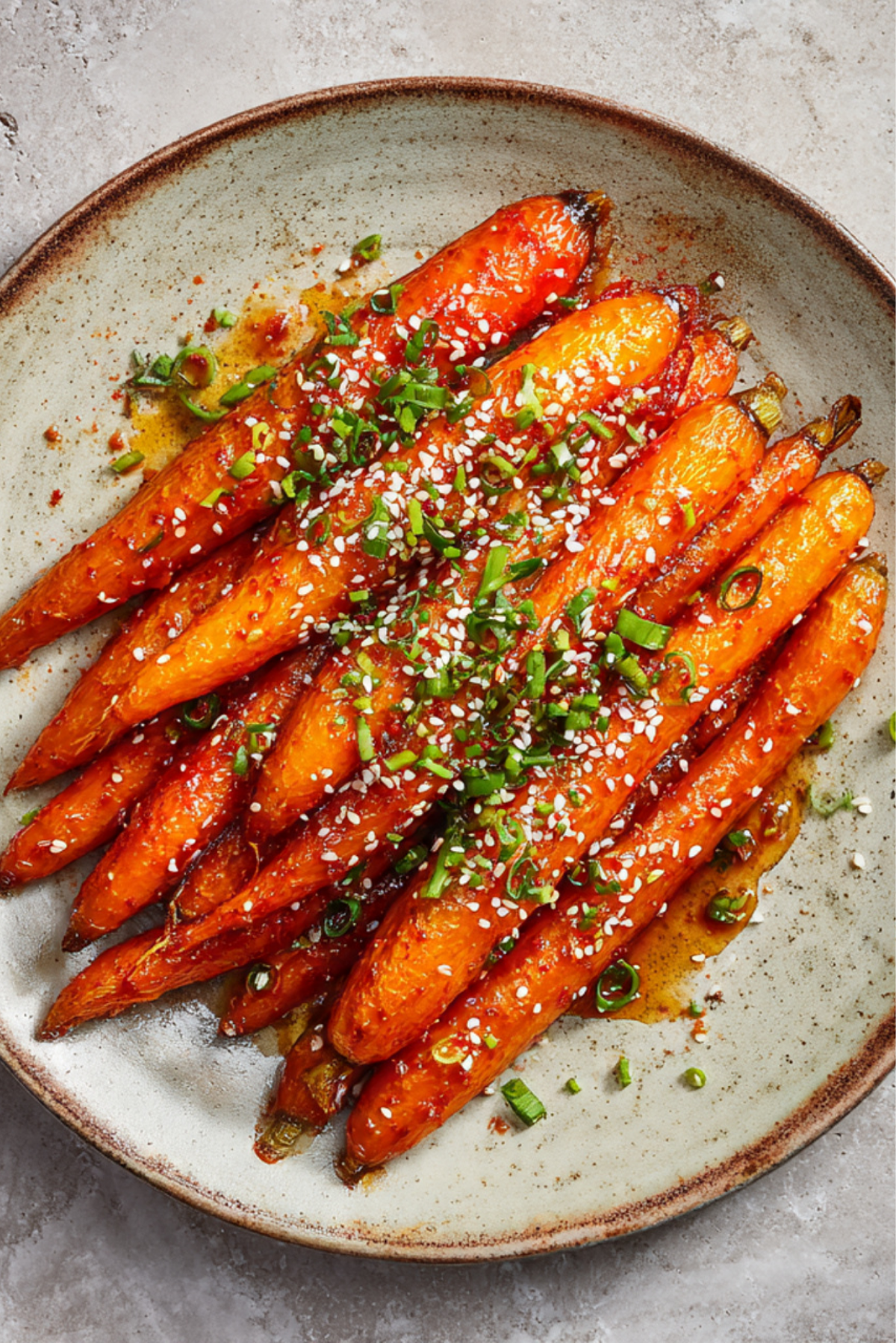 This one came to life in my kitchen on a chilly afternoon when I was craving something warm, bold, and colorful. I had a bunch of fresh carrots in the fridge and a craving for something spicy. The tub of gochujang in the back of the pantry whispered my name, and honey wasn’t far behind. After a bit of experimenting with ratios and roasting times, this spicy-sweet glazed carrot dish came together in the most delicious way.