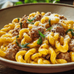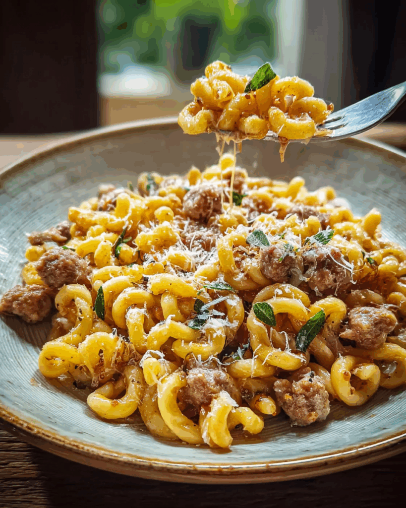 The beauty of this dish lies in its contrasts. The pasta’s firm bite against the sausage’s crumbles creates a perfect balance. Cream mellows the richness, while Parmesan adds a salty edge that keeps you reaching for more. Fresh parsley brings a final burst of brightness that lifts the entire plate.