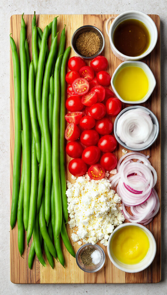Fresh and vibrant green bean salad with cherry tomatoes, red onion, feta, and a bright lemon vinaigrette. A crisp and flavorful side dish.
